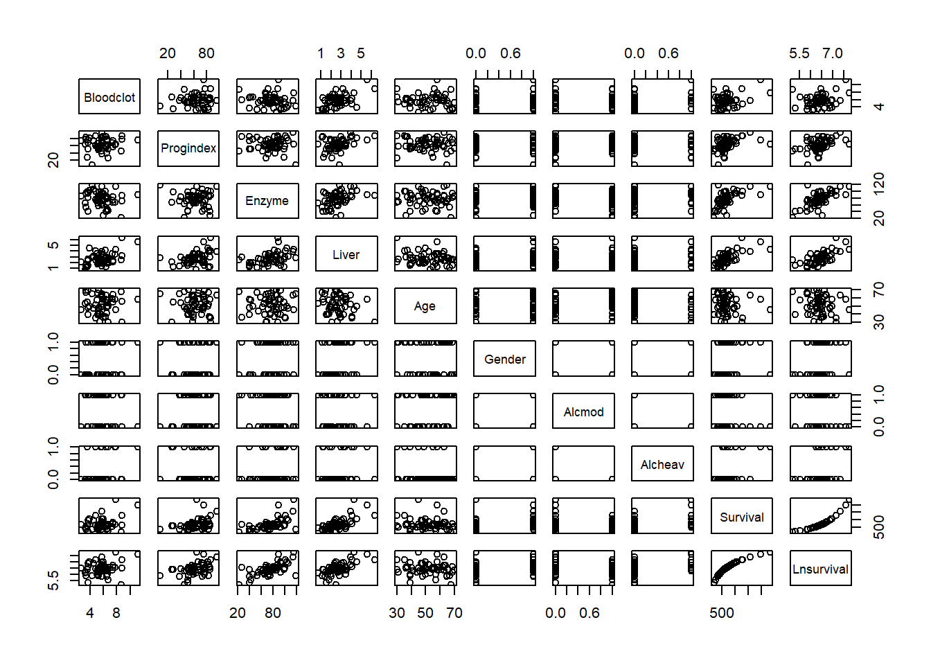 ## (Intercept) Bloodclot Alcheav Progindex Enzyme