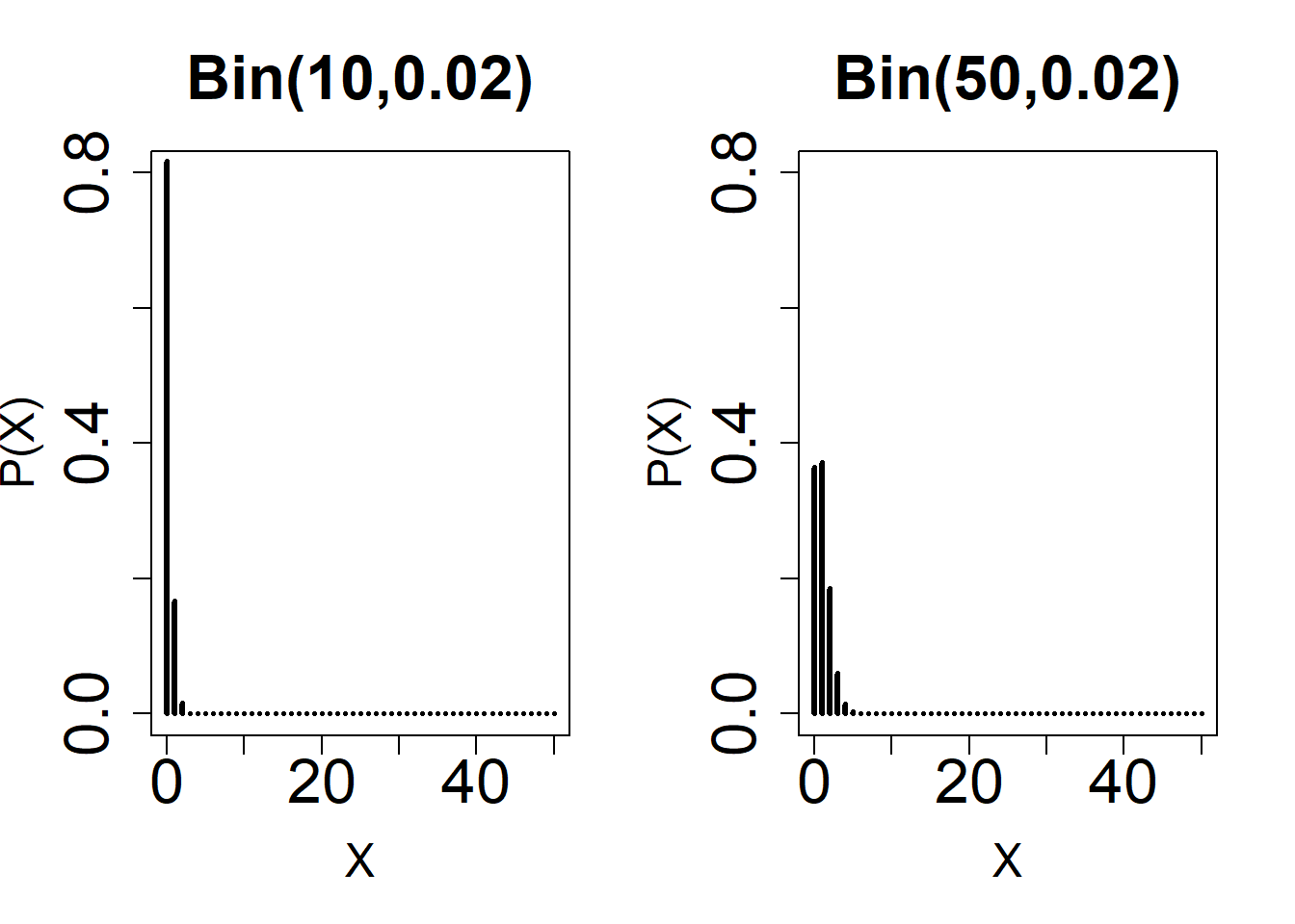 \(P(\mathcal{X}=k)\ = {n \choose k}p^k(1-p)^{n-k}\)